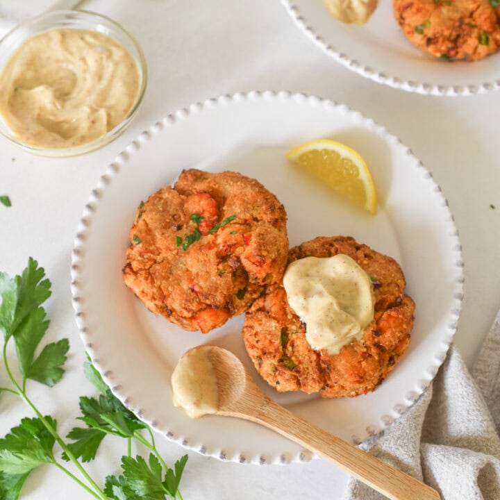 These Air Fryer Crawfish Cakes paired with a homemade Remoulade Sauce put a Louisiana twist on a classic crab cake and use up any post-crawfish boil leftovers.