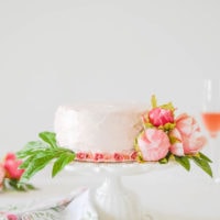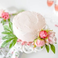 That’s where I come in. Or, where this Strawberries and Cream Champagne Vanilla Cake comes in. Anyone can make it. In less than an hour. You won’t spend hours upon hours forming sugar crystal flowers, because you’ll adorn your cake with faux flowers instead.